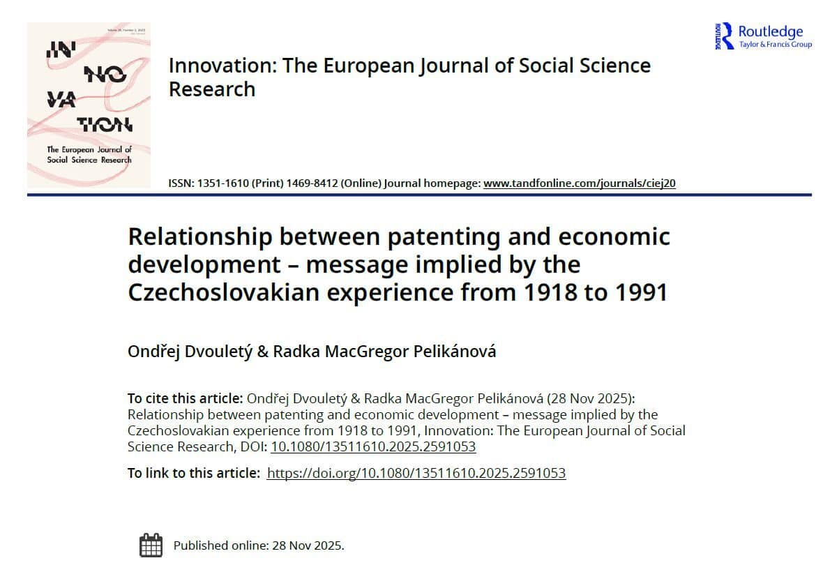We are proud to share a newly published research article co-authored by Ondrej Dvoulety and Radka MacGregor Pelikánová. Radka is Research Lead of the UNYP Communication and Media School Research Center. The paper, “Relationship between patenting and economic development, message implied by the Czechoslovakian experience from 1918 to 1991,” has been published in Innovation: The […]