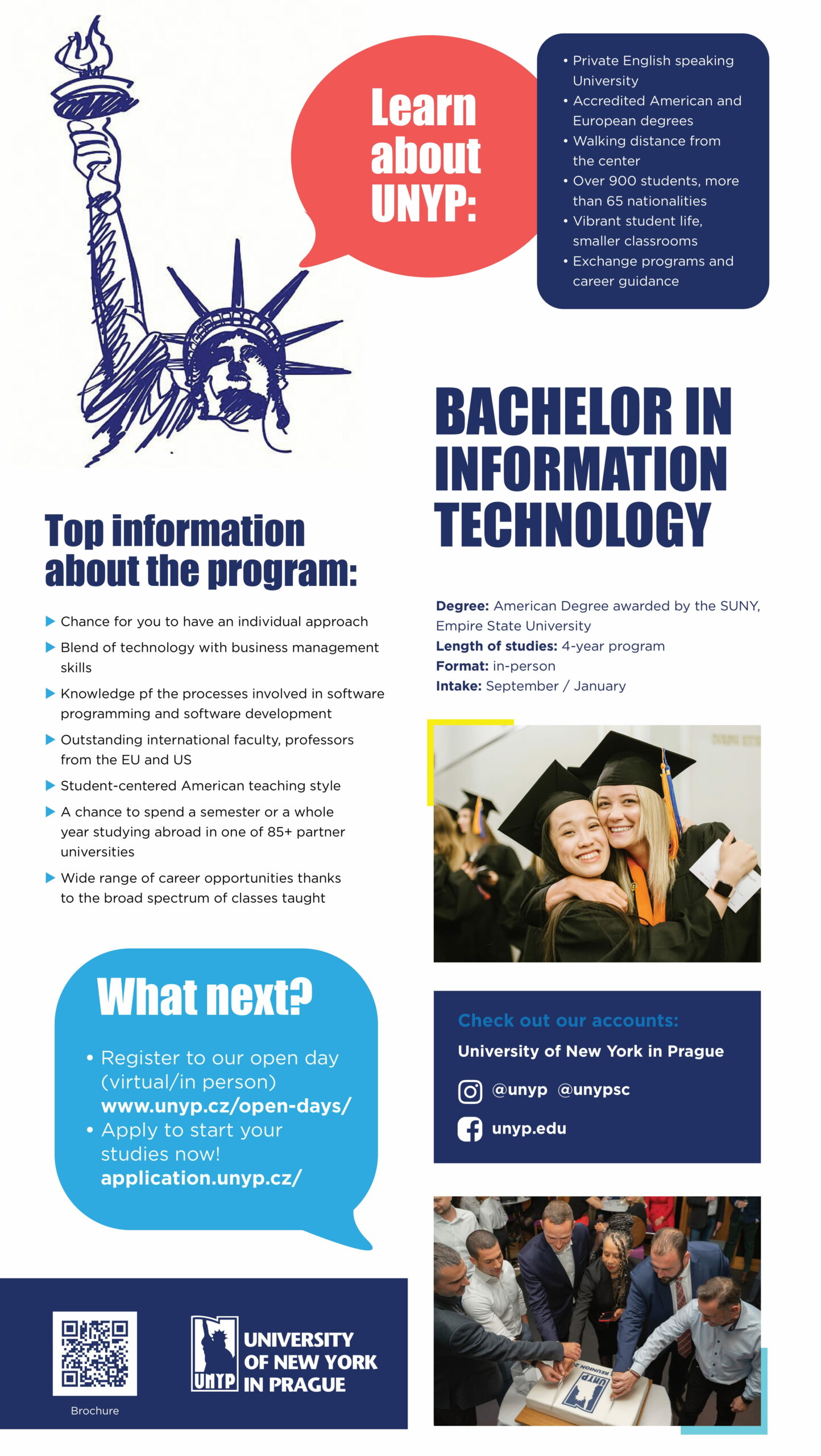 Prepare for the digital future with the Bachelor of Information Technology (B.S.) at the University of New York in Prague. Study in English in the heart of Europe, develop strong technical and business skills, and earn a respected American-accredited degree that opens doors to global technology careers.