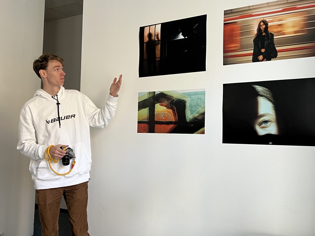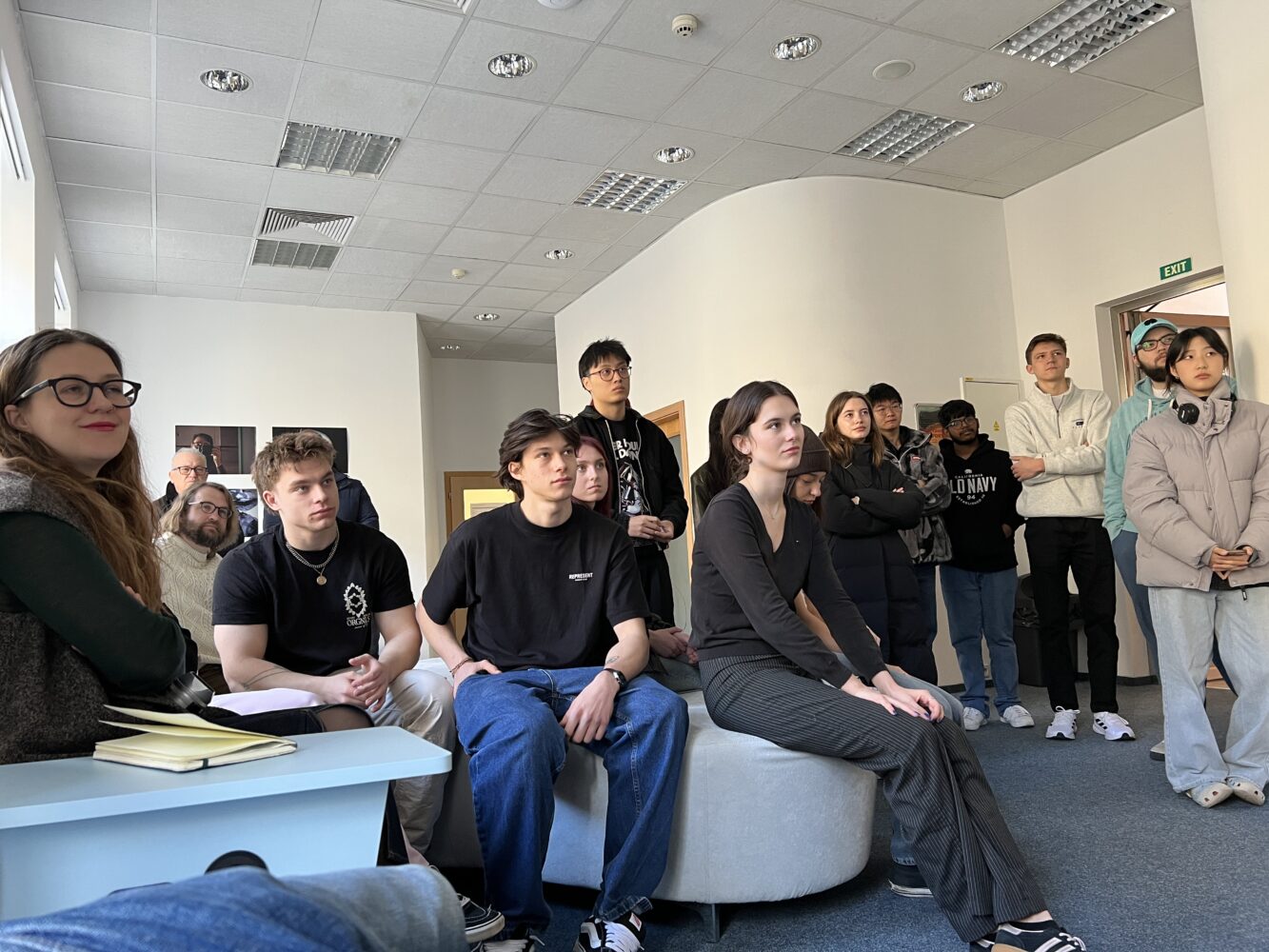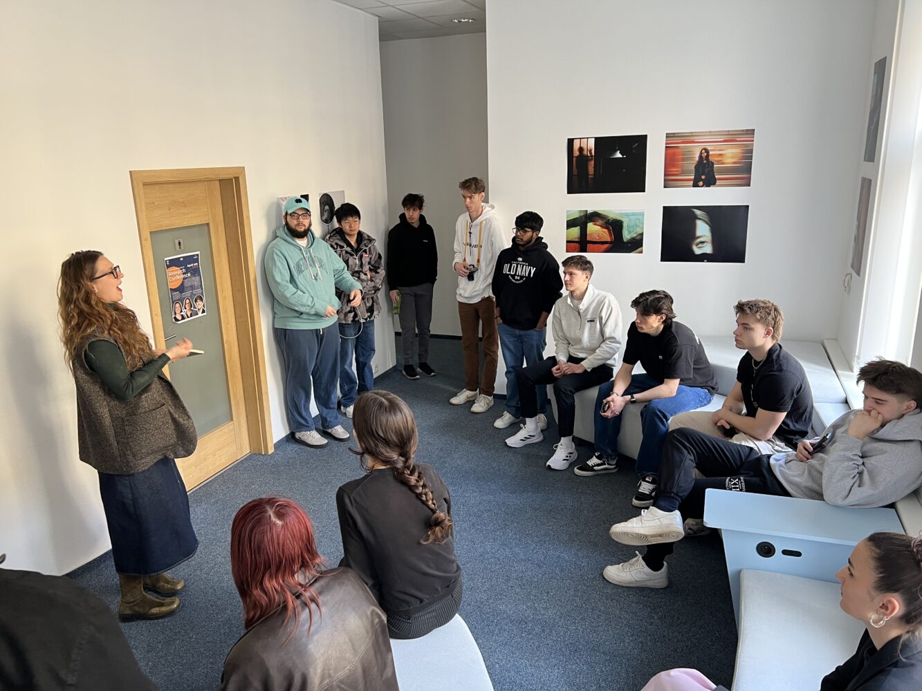 UNYP Communication and Media students present their photography projects to one another and faculty in one of the UNYP common areas.